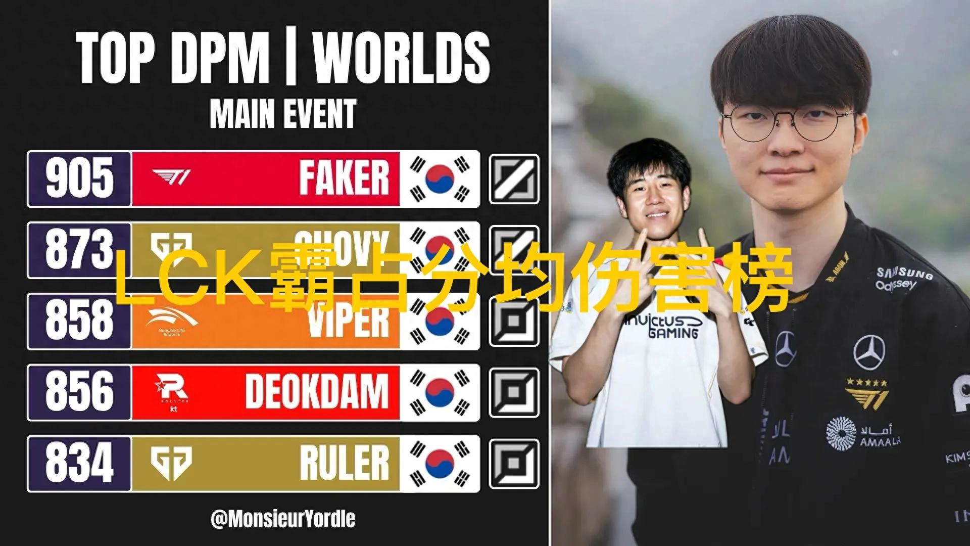 Introduction: The S15 season matches have officially kicked off, and it's believed that most players have been following the recent confrontations closely. The World Championship games are extremely intense, and as teams get eliminated one by one, the organizers have entered a three-day break. The average damage per round in the first three rounds exploded unexpectedly, with all top five players coming from the LCK. Remarkably, the top spot belongs to T1's mid laner Faker, who had already surpassed 1000 before facing Gen.G. Perhaps feeling the pressure, BLG's top laner Bin started training, but lost both games playing Volibear and Rek'Sai.