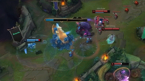 Later, Chovy’s Anivia made a crucial play by walling off the support. KT forced a gank on Kiin, who, low on health with his Sion, lured them deep into the jungle. GEN eliminated the support upfront and then surrounded KT’s players, causing KT to lose three members in the fight.