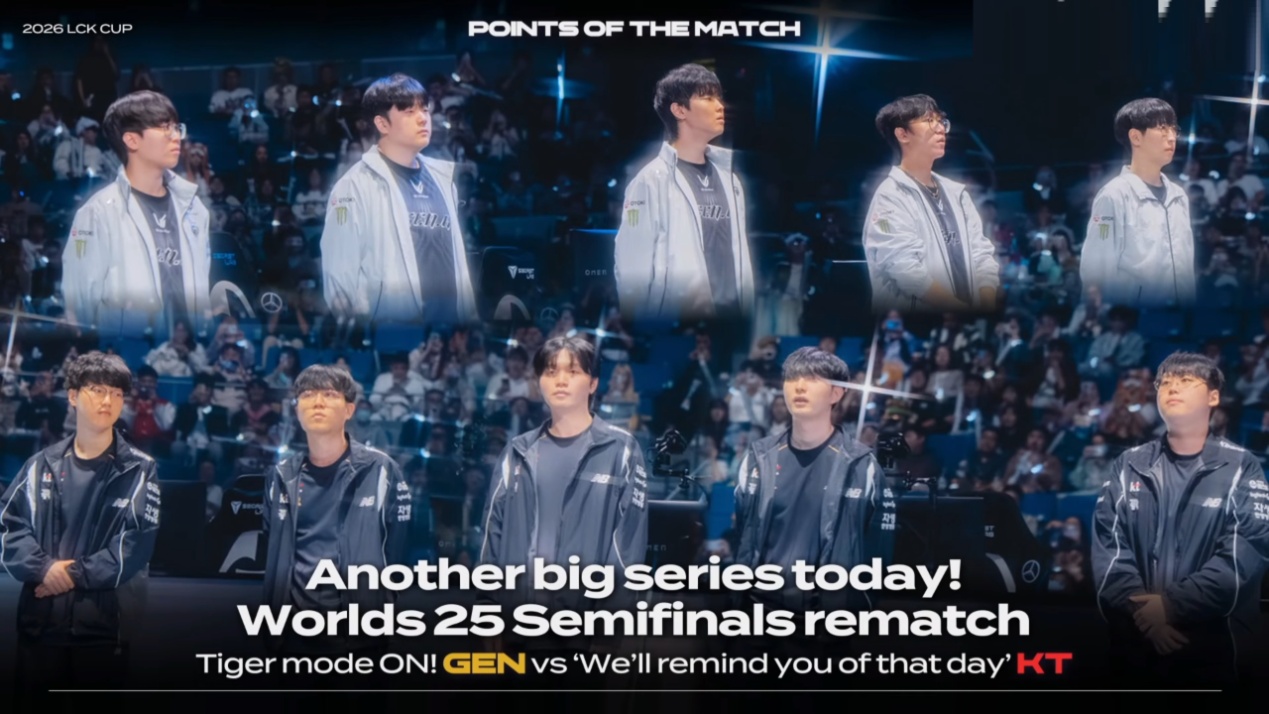 Following the start of the LCK, several key matches took place. After T1 defeated HLE, the contest between GEN and KT became a major focus, with GEN ultimately sweeping KT 2-0.