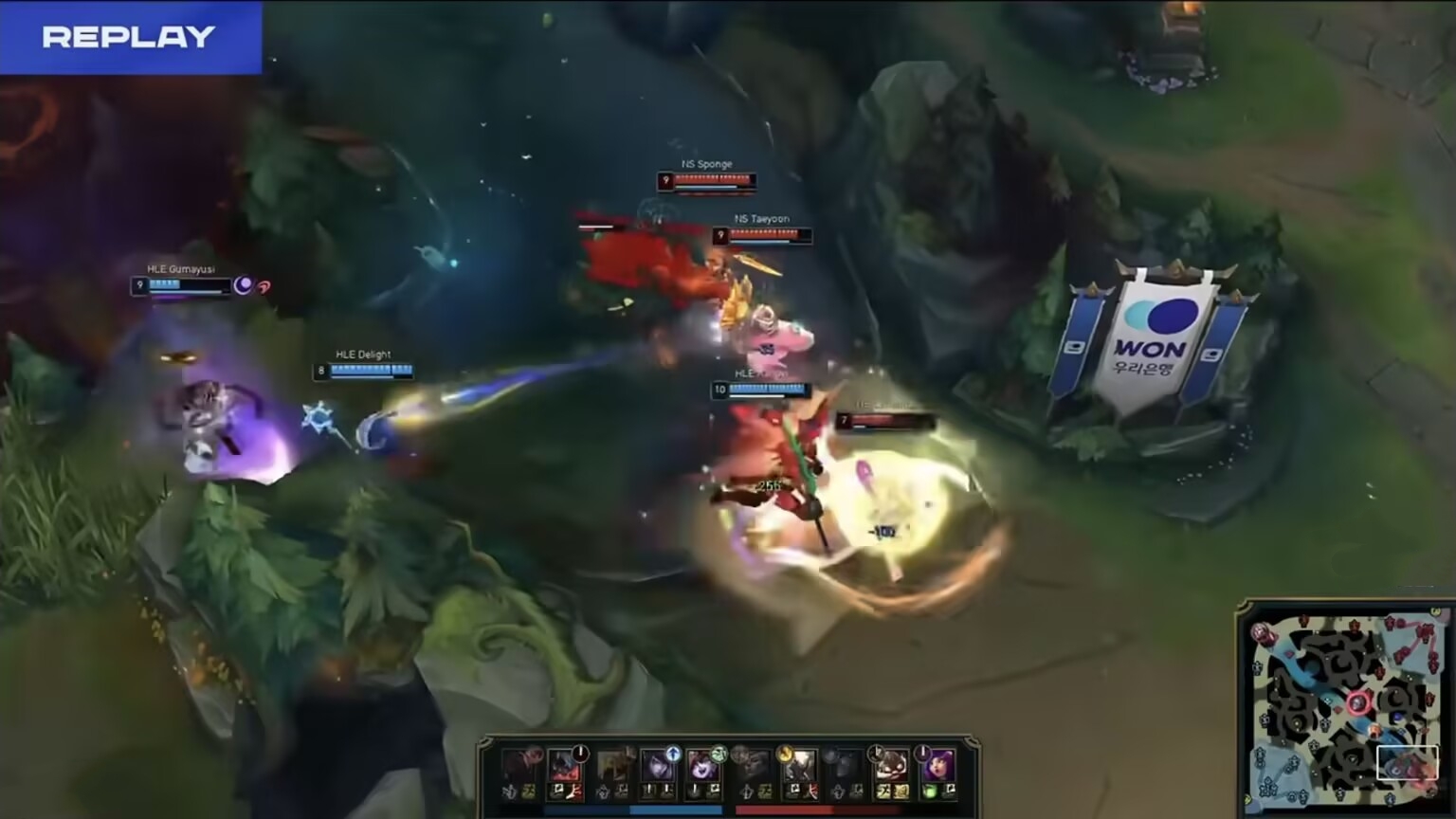Despite giving away kills twice, HLE still held the gold lead. Possibly after being scolded by teammates, Kanavi calmed down, and HLE’s team fights were mostly successful. However, at 22 minutes, Kanavi got overconfident again, diving under high ground turret to kill enemies before NS’s second tower fell. This play was less impactful than previous ones. In the final decisive fight, HLE found an opening, killing NS’s support and forcing a 5v4 Baron fight, but they ended up losing it.
