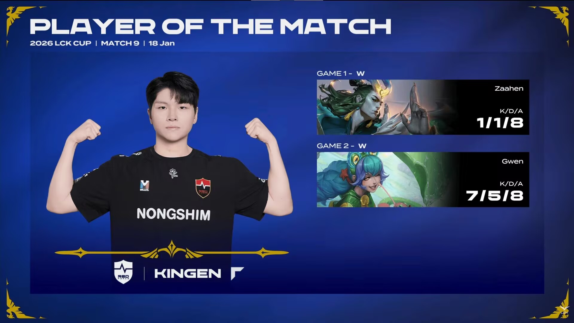 The first week of the first split in the LCK has concluded. On the last matchday, T1 defeated DRX to secure their second consecutive win. Although they won, T1’s form was quite poor. Peyz failed to perform well in three straight games, nearly becoming the scapegoat, and Keria’s laning was sloppy with many missed skill shots. Fortunately, in the final game, Doran’s Gwen held strong; otherwise, T1 might have unexpectedly lost to DRX.