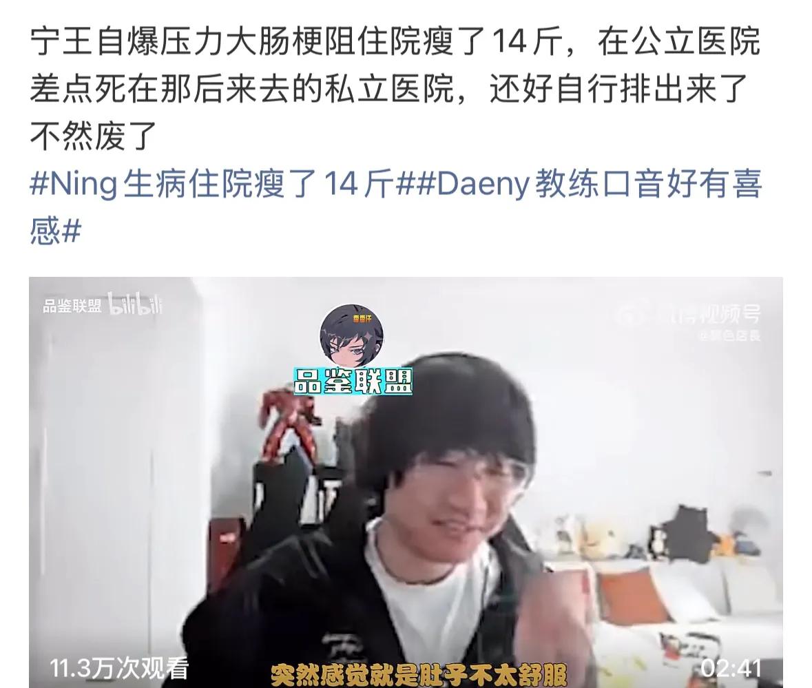 This kind of schedule imposes significant physical stress on players. Fortunately, most esports pros are young, often pushing their bodies beyond limits to train professionally. Recently, IG’s former world champion Ning disclosed his health issues on a livestream, admitting he almost couldn’t hold on. The pressure caused intestinal obstruction, leading to hospitalization and a 14-pound weight loss. While at a public hospital, he nearly died but later went to a private hospital where he managed to relieve himself naturally; otherwise, the consequences would have been severe. It was clear he was still shaken when sharing this, as health problems can be unpredictable in severity.