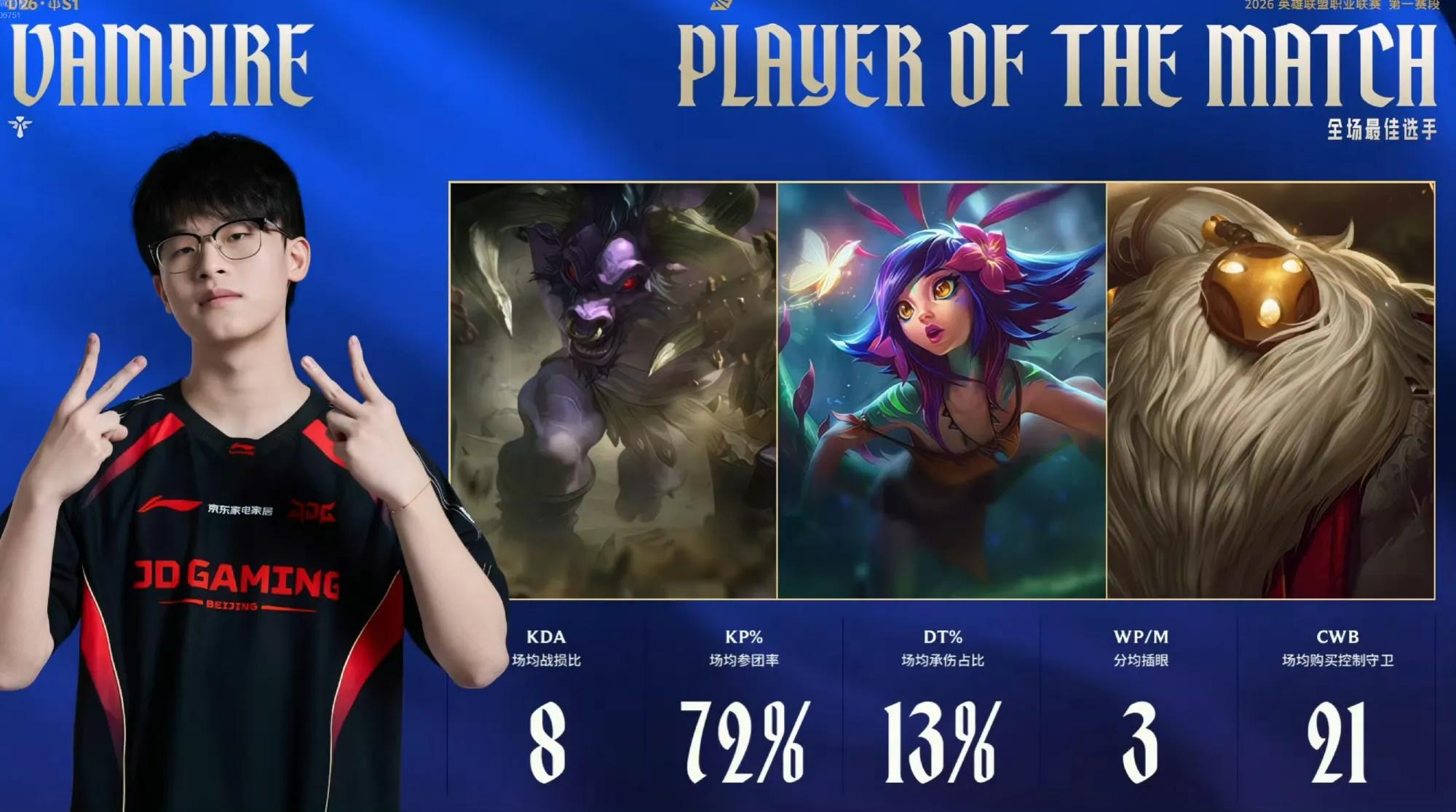 In the third game, JDG’s support player Vampire performed exceptionally well. Many joked that it was like Keria had possessed him. Bard’s crucial ultimate saved Gala and JDG, effectively ending the team fight at the bottom lane in one decisive move. After this match, JDG achieved a double sweep over BLG in the two rounds. Although their records are currently equal, JDG holds the top spot in the LPL due to the head-to-head advantage. It must be said that Tabe’s coaching of support players is impressive; with former players On and Kael, plus now Vampire, could it be that another world-class support player is emerging?
