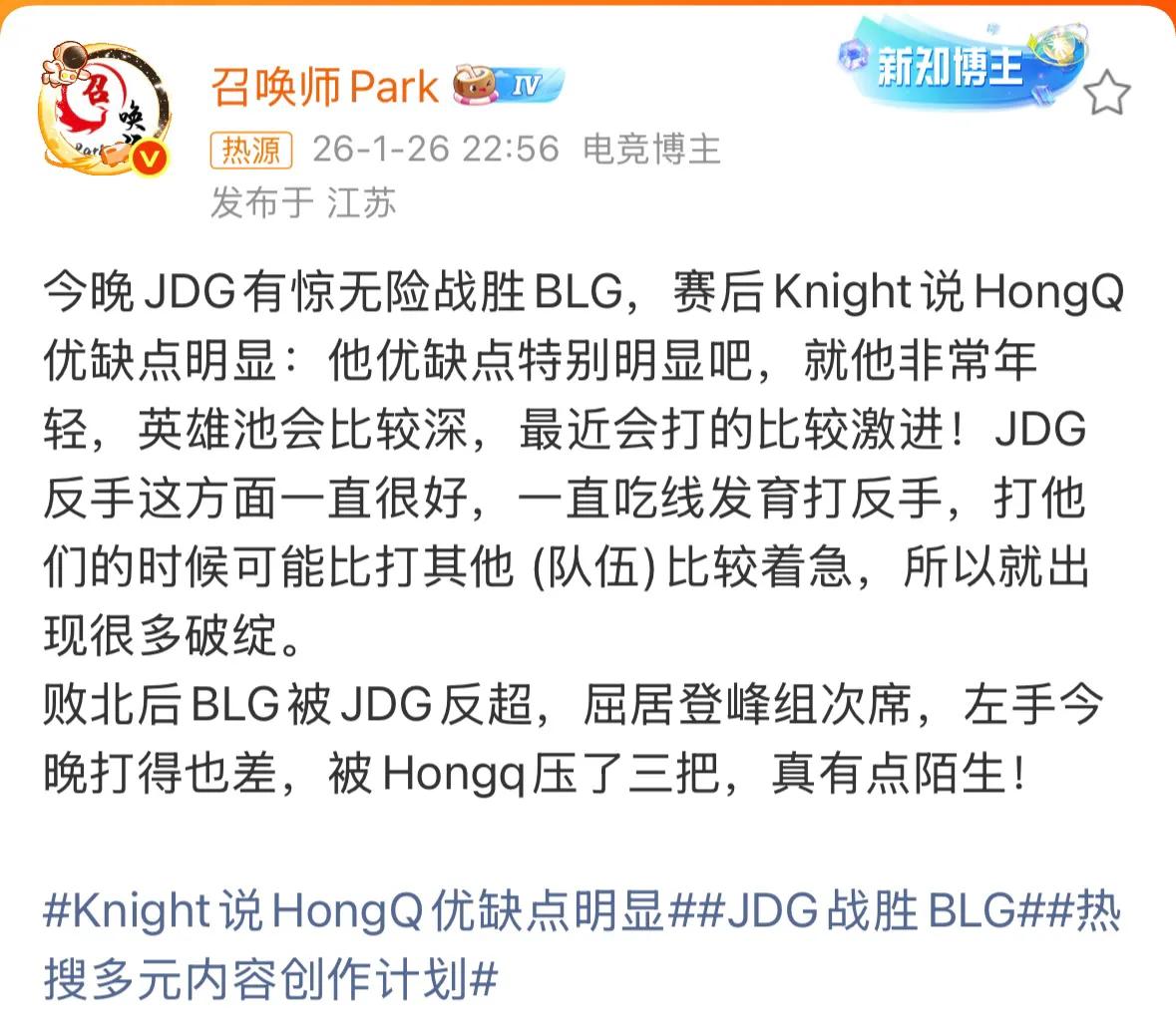 Introduction: The S16 season matches have officially started, and it’s believed that the majority of players have been watching the recent clashes closely. The LPL region’s competition is very fierce. Recently, there has been abundant news about the BLG team, with their second match against JDG becoming a hot topic among players online. The two teams delivered a back-and-forth comeback. After two consecutive games with massive economic comebacks, JDG seized the opportunity to defeat BLG 2-1 and completed a double sweep, rising to the top of the LPL standings. In the post-match interview, Knight sharply commented on HongQ, saying he is a player with very obvious pros and cons, a deep champion pool, but too young and aggressive.