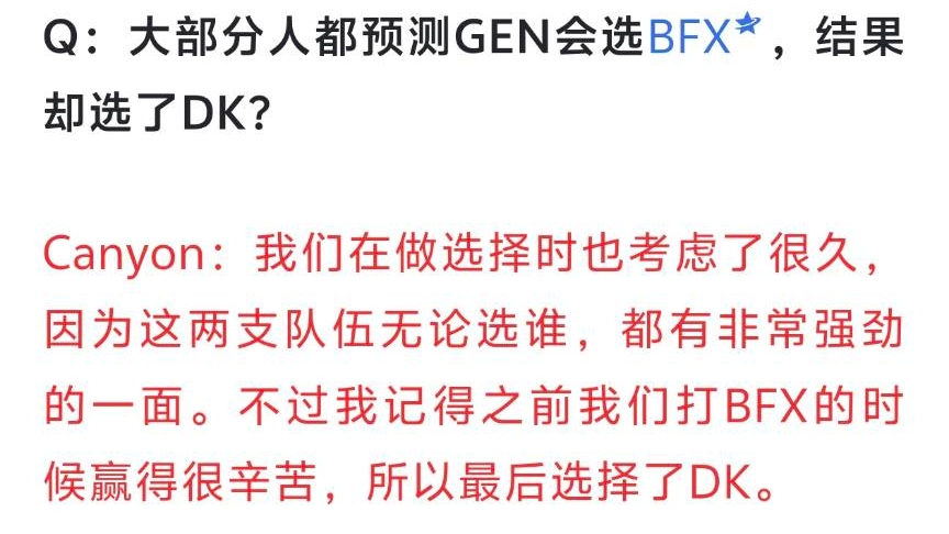 If I recall correctly, Canyon contributed to 11 of GEN’s 21 wins against DK. When he couldn’t win anymore, he chose to join GEN. He also explained why he picked DK: "When we played BFX, it was a tough fight, so we finally chose DK. Looking at the results, DK was indeed easier to beat than BFX. T1 lost to BFX in the playoffs, so GEN’s win wasn’t easy either."
