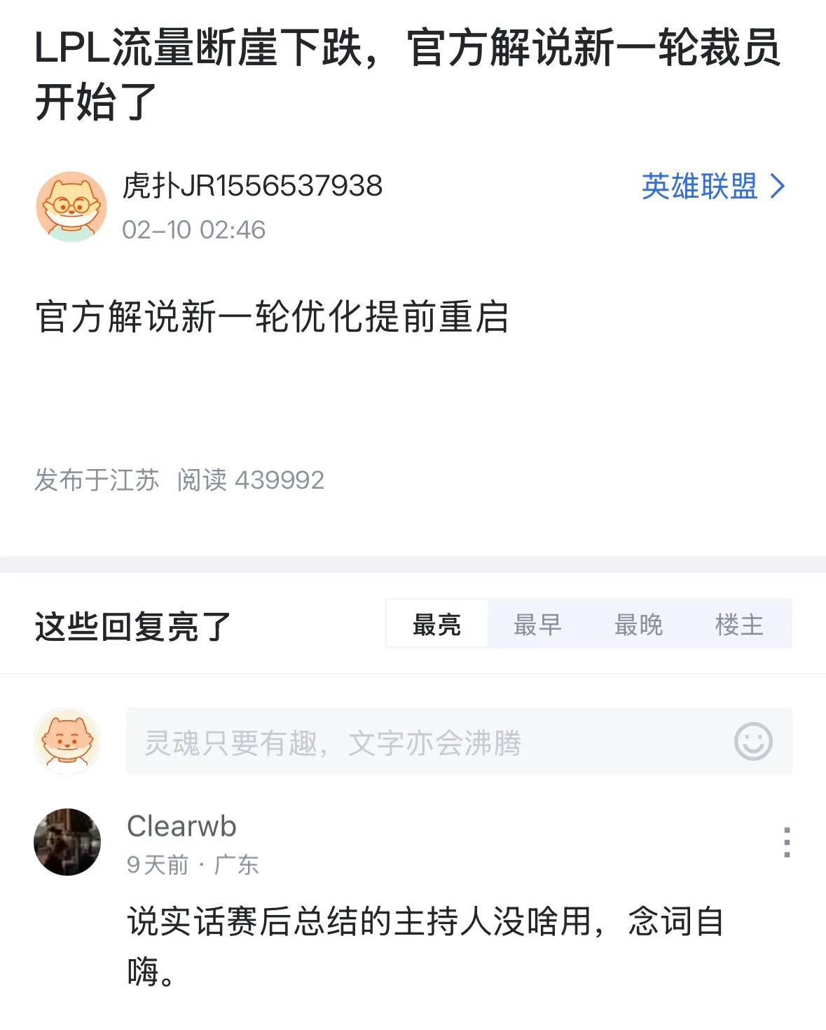 Once this voice feature launches, it will surely boost the game’s popularity significantly. To improve the competition environment, rumors say LPL is starting another round of layoffs among official commentators. Indeed, there’s no need for so many new commentators now; only the veterans attract views. Many netizens joke that post-match hosts are the least useful since everyone has already watched the game, making their commentary redundant and awkward. Honestly, to maintain LPL’s viewership, strong performance is key—no amount of personnel changes can replace winning a World Championship.