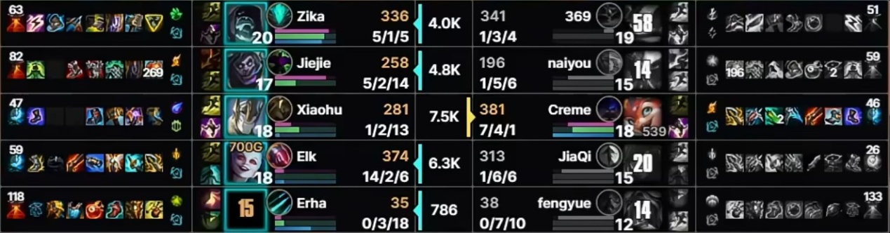 In contrast, Crème's Smolder performance was truly exceptional. He achieved an 8000 gold lead over his lane opponent, dealt over 2000 damage per minute, totaled 71,185 damage for the game, with a staggering 350% damage-to-gold conversion rate, accounting for 53% of his team's damage, breaking multiple personal records.