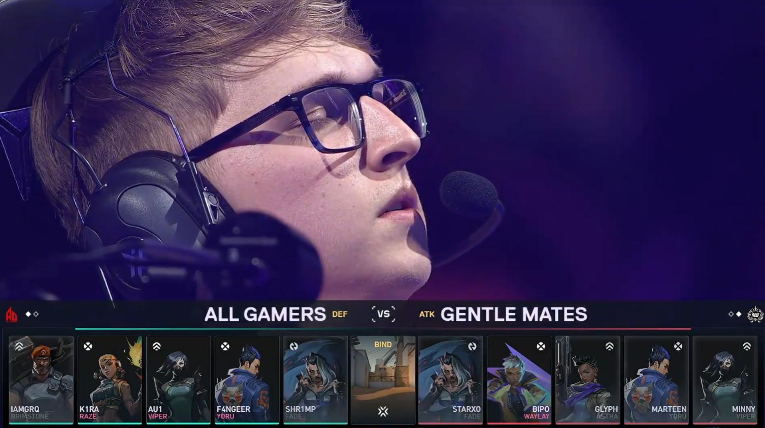 Defending side AG: Viper, Raze, Shadow, Astra, Skye