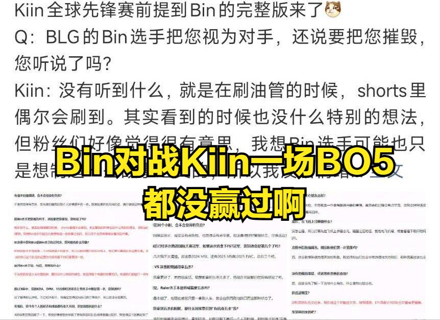 In the interviews, Kiin's response was the most interesting. Kiin said that Bin is a player without distinctive match characteristics; he has faced Bin many times, and Bin's play never impressed or amazed him. Kiin also joked that he has never lost to Bin in a BO5. It must be said Kiin's嘲讽 skill is truly high, but Bin really can't counter Kiin's words, since Bin has only met GEN twice, and both times GEN won easily.