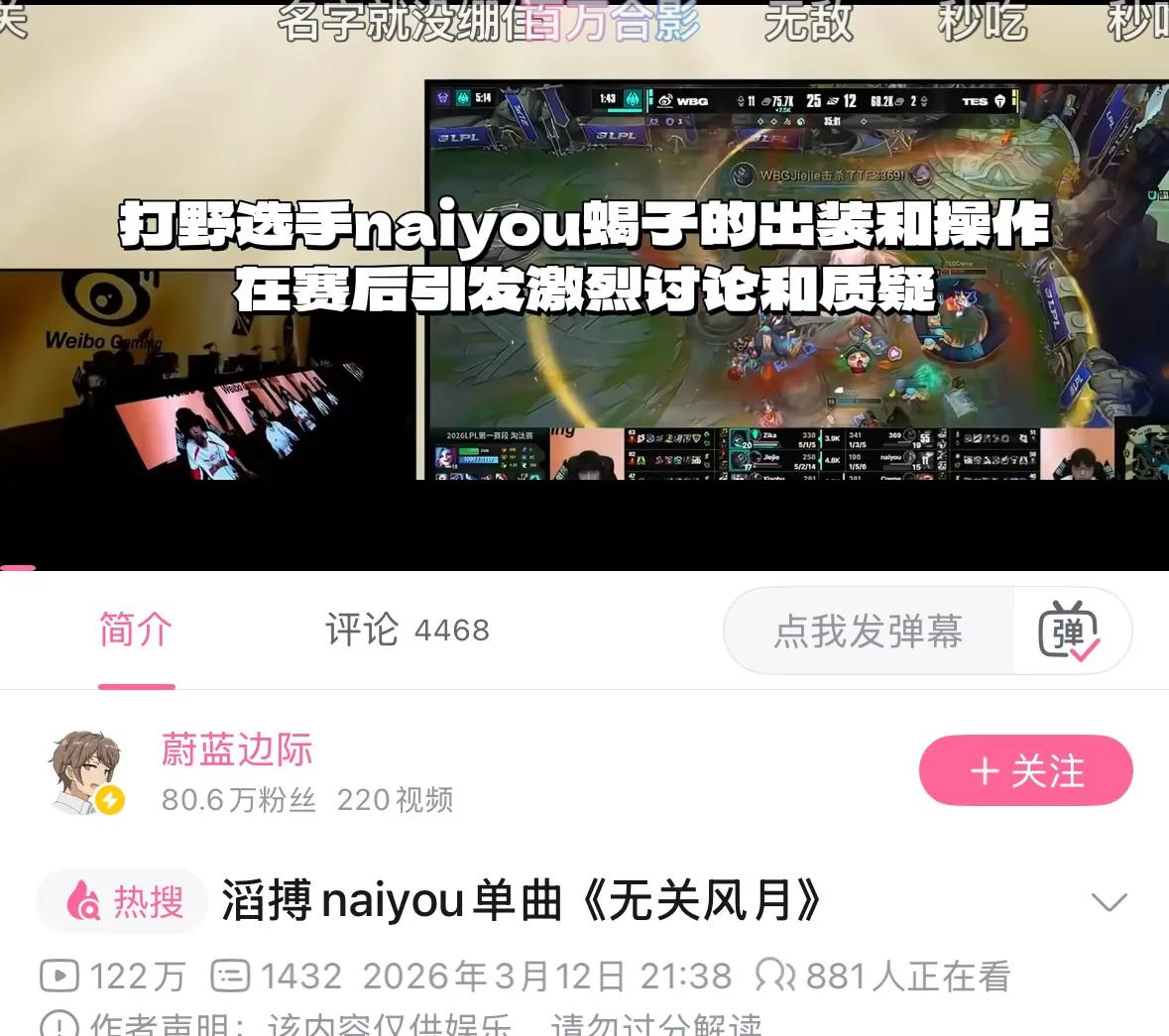 Only a year after the成名曲"Turmoil," "Unrelated to Romance" has再次exploded across the internet. If you haven't heard it, you can go感受一下the song's强度. This time, only the more精髓segment of lyrics is shared, but truly, each word pierces the heart—估计even TES players would strongly认同.希望they can adjust their状态in the second stage,毕竟jungler, AD, even support might change, basically forming a new team.