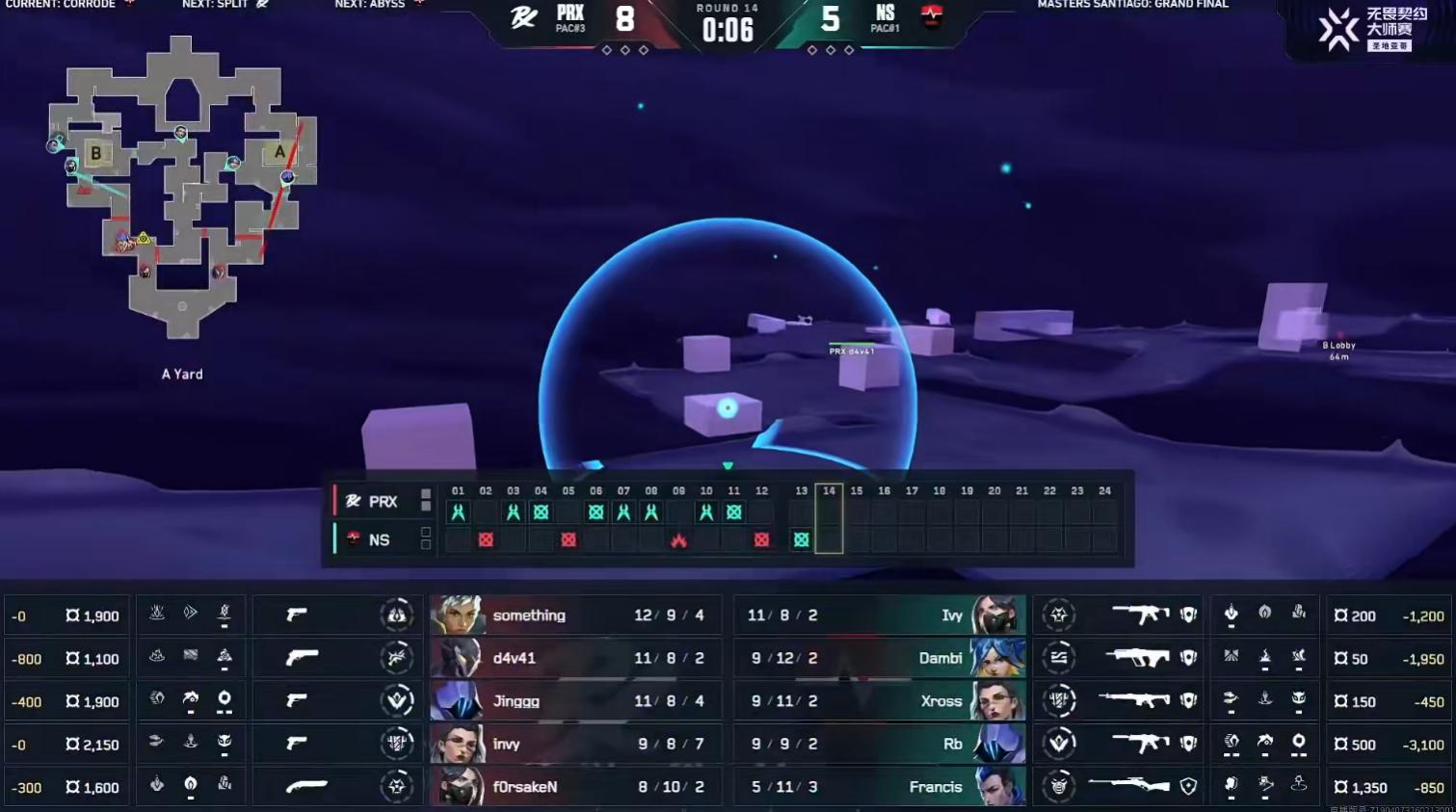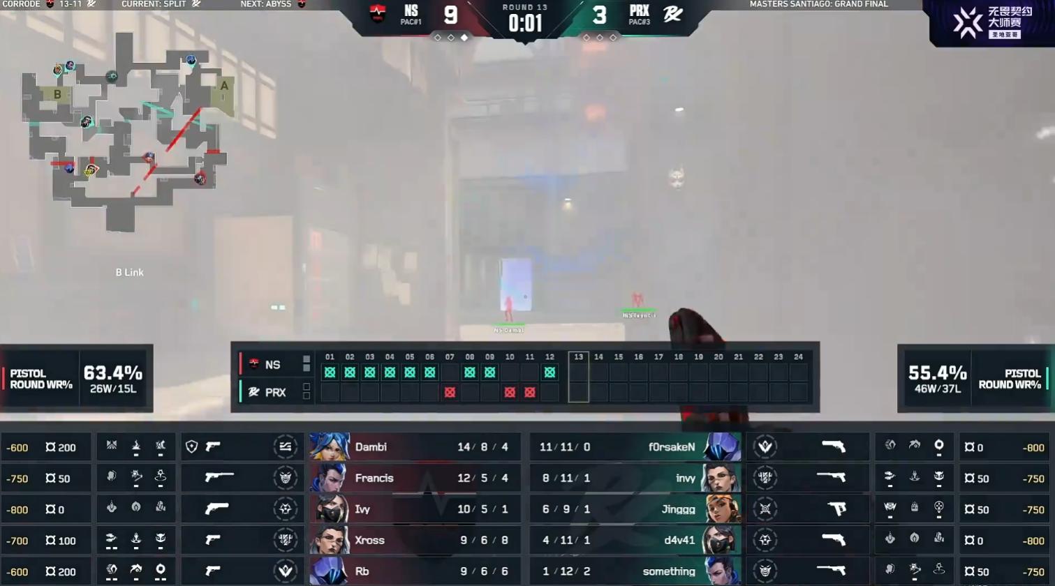 NS again started strong, securing an early lead; PRX consistently failed to control mid, round 4 saw invy's refragging coordination suffer a major misplay, PRX couldn't secure the box behind point B and lost.