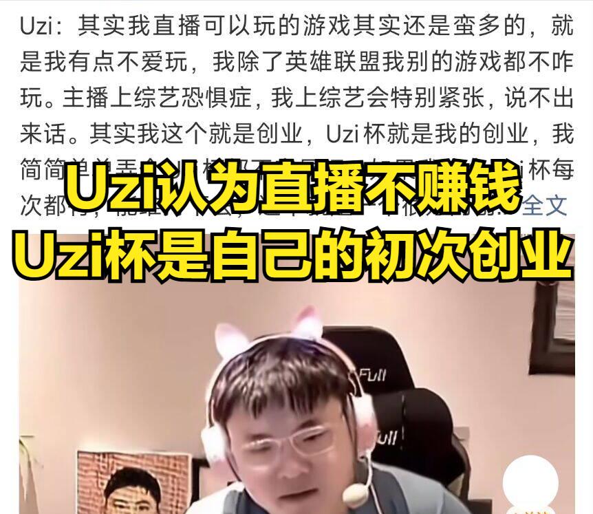 除LPL轉會期引發觀眾熱議外,Uzi所舉辦之「烏茲杯」近期亦獲眾多LPL觀眾討論與觀看,畢竟休賽期間許多觀眾感到無聊。近期Uzi於直播中談及舉辦烏茲杯之目的。Uzi表示初始舉辦烏茲杯乃為粉絲「謀福利」,讓粉絲觀賞其比賽風采,同時自身亦渴望重返賽場之感。