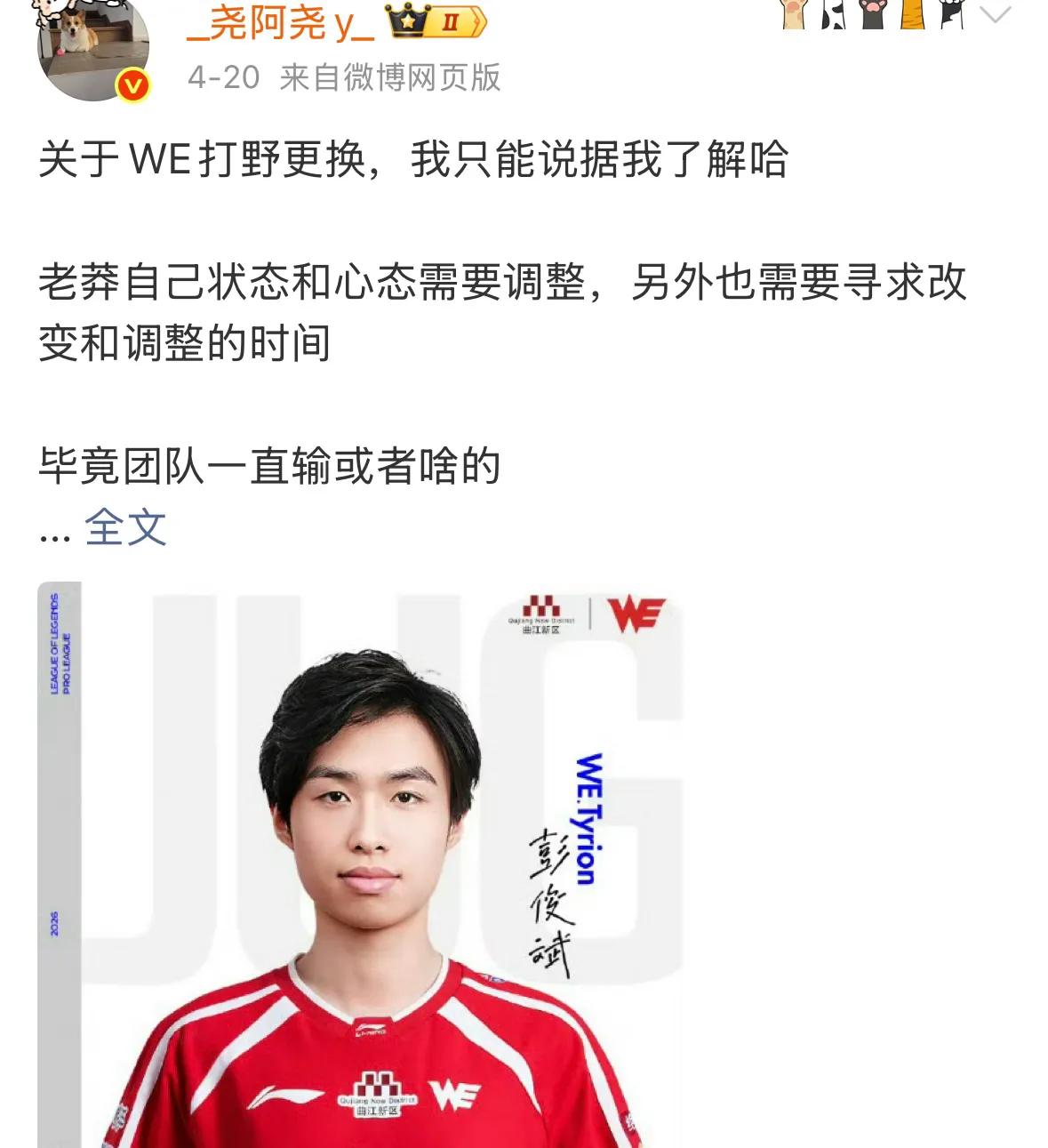 Coach Kim Jeong-soo from the LCK region has joined. LPL fans familiar with him know he is a former championship coach, though in recent years he has gradually moved to secondary roles. His arrival at Team WBG is likely more for a veteran role, unlikely to contribute substantially to the team. Team WE has also been established for over 21 years, possessing deep roots. Despite poor results in recent years, they still enjoy support from numerous sponsors and acquire new players each season. This season, their jungler Monki's performance has fluctuated severely, even dubbed by netizens as the "hyper-aggressive jungler," and after consecutive losses, he was rotated out for rest.