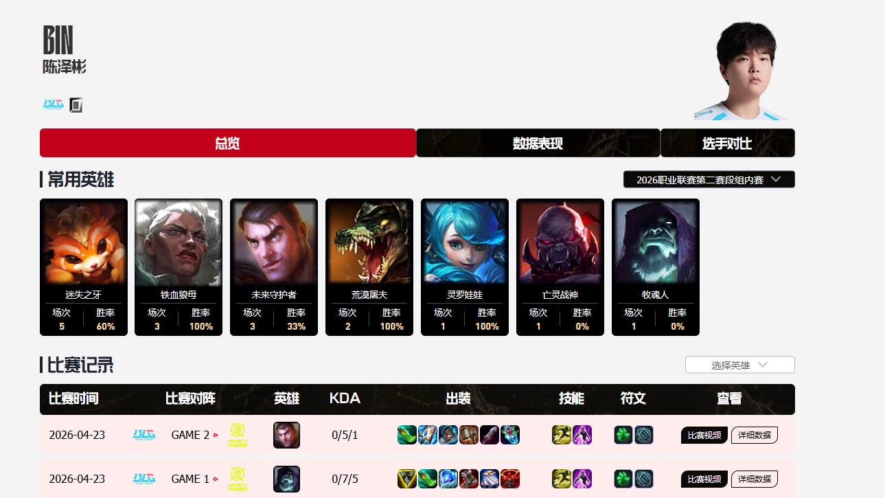 Bin's recent form is genuinely somewhat low. He's often pressured in lane; if the enemy jungler comes, he's caught. It feels like he's won too much and has become somewhat arrogant. With ten more kills, his O-series development would surpass "Brother's" record. However, next match BLG faces Weibo; Brother's record likely won't be broken by Bin.