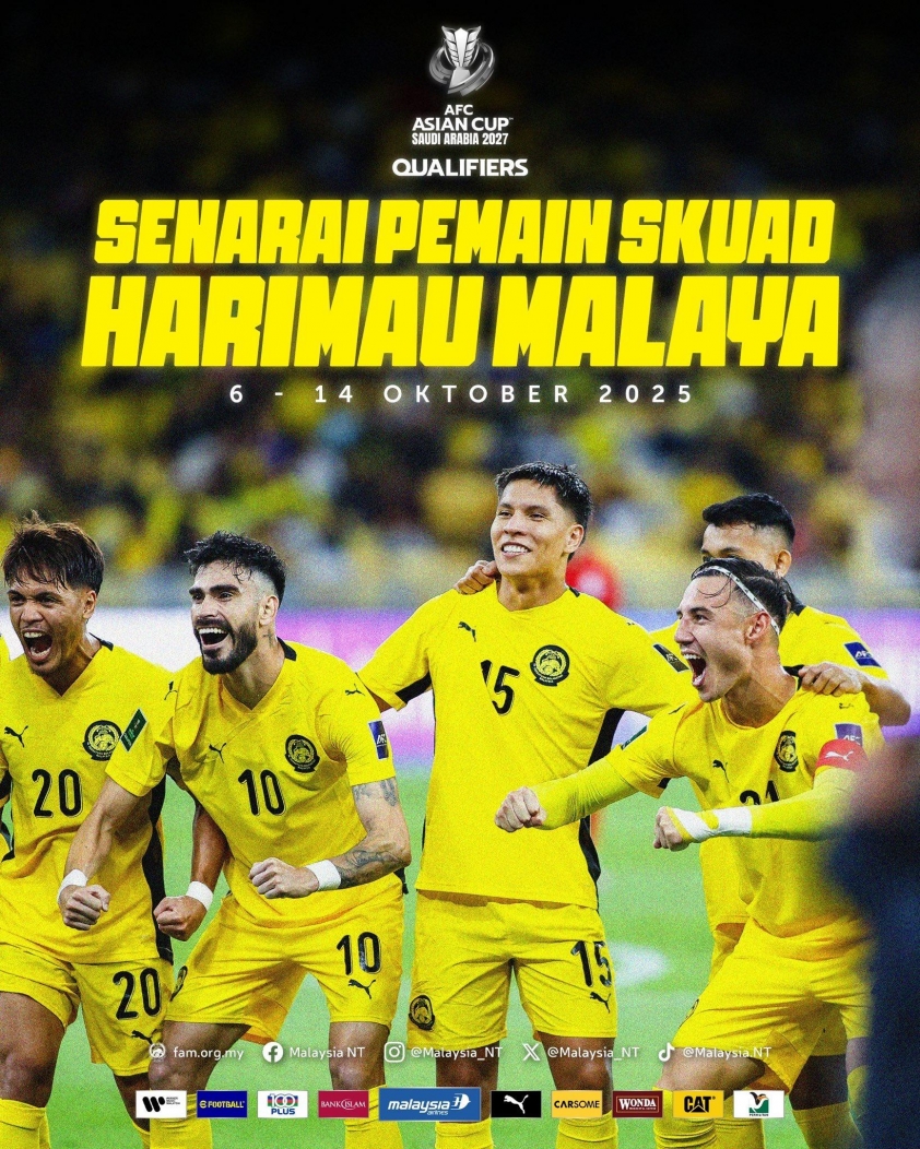 Head coach Peter Cklamovski has officially announced a 29-player squad called up for Malaysia’s national team to prepare for the two vital matches in the 2027 Asian Cup qualifiers. According to the schedule, Malaysia will play away in Vientiane, Laos on October 9, then return home to Bukit Jalil Stadium for the rematch on October 14, 2025.