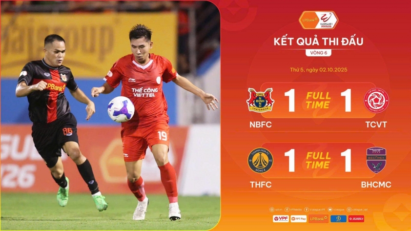 However, Ninh Binh failed to maintain dominance afterward, allowing The Cong Viettel to come back and equalize 1-1 in the second half. This thrilling draw prevented Hoang Duc and his teammates from breaking away in the standings, while their pursuers — including The Cong Viettel — remain close behind.