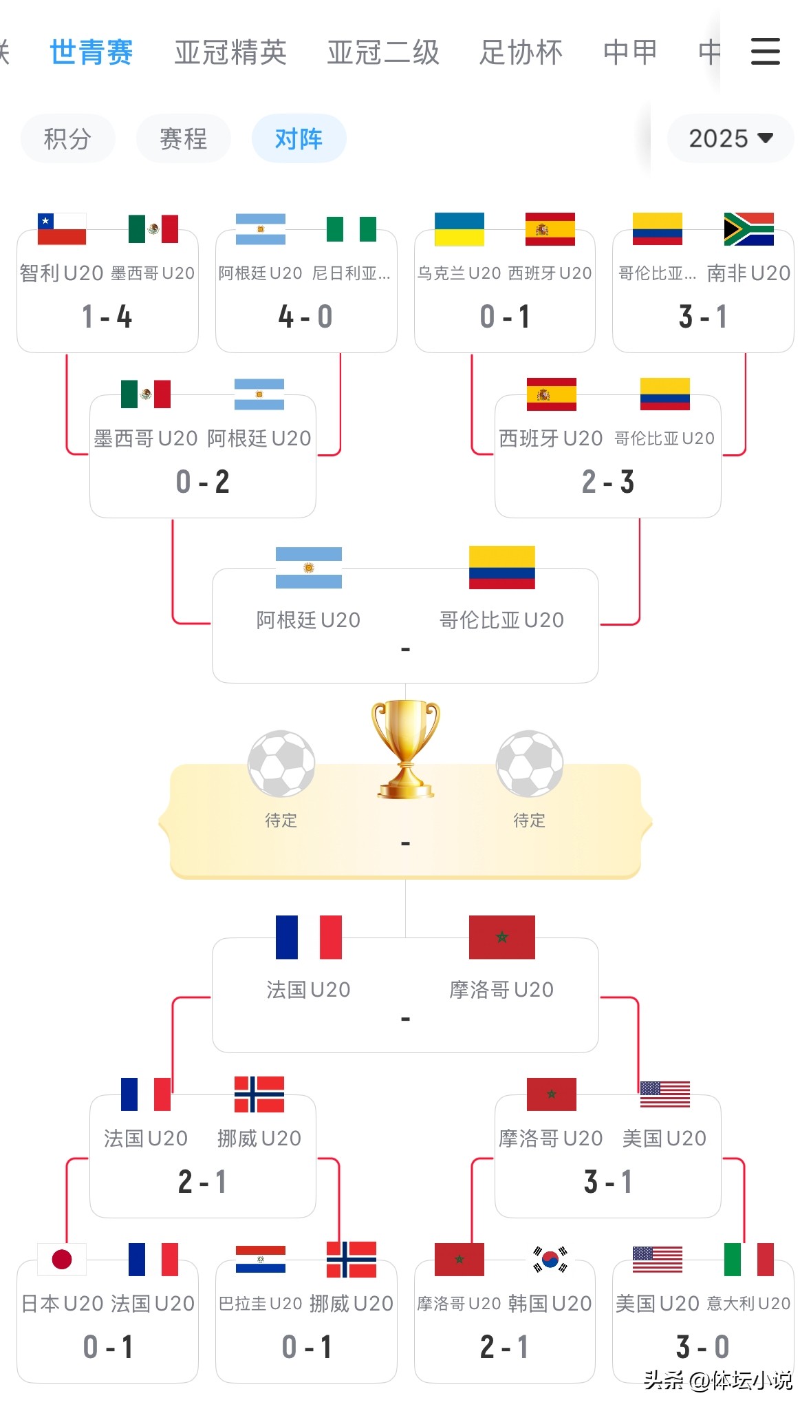 On October 13th Beijing time, the U-20 World Cup quarterfinals proceeded with a thrilling night of action. In two key matches, Morocco overcame the USA 3-1, and France eliminated Norway 2-1 in a European derby. Consequently, the semifinalists are confirmed as Argentina, Colombia, Morocco, and France, with South America securing two places as the main beneficiaries!