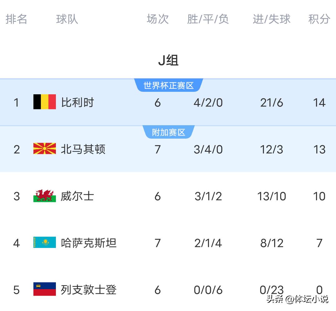 Belgium versus Wales. Belgium is the king of qualifiers, undefeated in the first five matches of this campaign. In the sixth round against Wales, who started aggressively at home and scored a dream goal in the 8th minute to take the lead. Belgium responded swiftly with a fierce attack, netting three goals to extend their advantage. In the final moments, both teams exchanged goals again—Wales narrowed the gap, but Belgium quickly struck back with a lightning-fast goal just one minute later. Ultimately, Belgium won 4-2 away, maintaining a six-match unbeaten streak, playing one fewer match, and topping the standings ahead of North Macedonia, aiming directly for the top spot and World Cup qualification!
