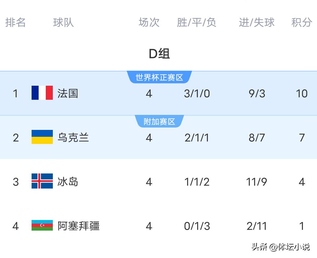 France versus Iceland. France has been the dominant force in this group, already securing three straight wins. This round they faced Iceland, but without Mbappé, France was tested. Iceland, playing at home, took the lead first with a counterattack goal. Although France controlled the game, they struggled to score. The second half improved for France as they bombarded Iceland’s defense, scoring twice in five minutes to take the lead. However, harsh reality struck quickly—within two minutes Iceland equalized again. Neither team scored afterward, and the match ended in a surprising 2-2 draw. France remains unbeaten after four rounds and still leads the group!