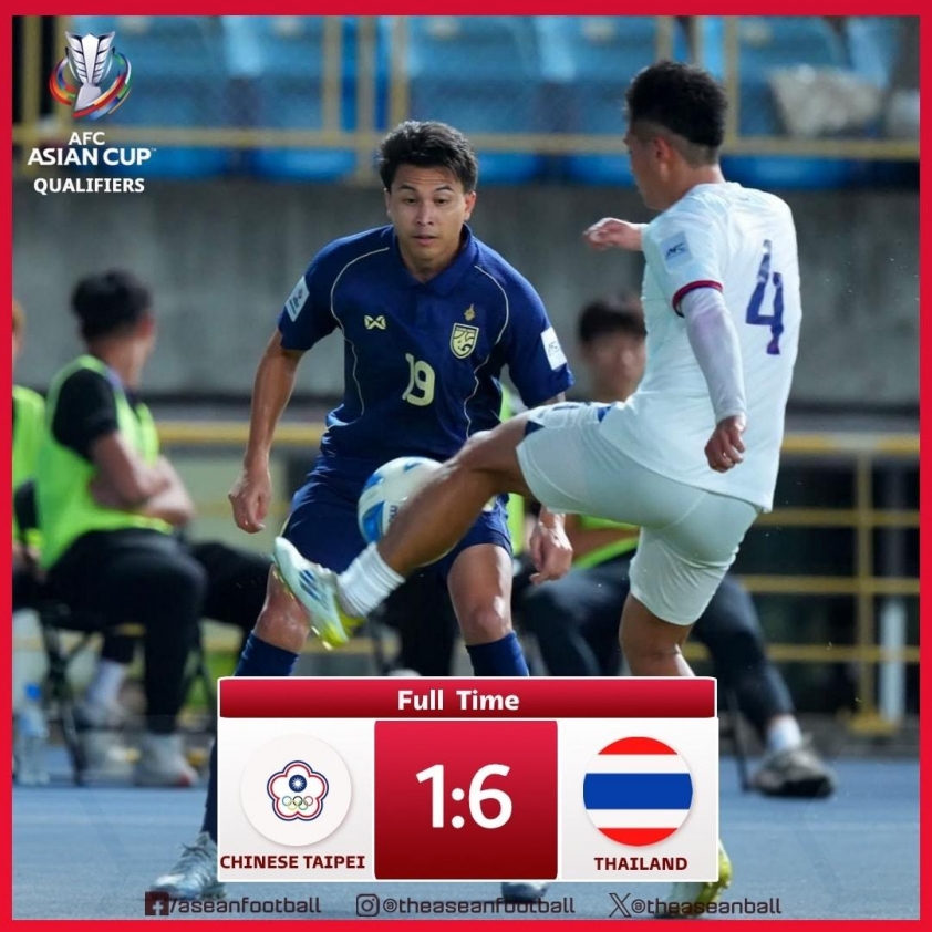 The overwhelming 6-1 triumph over Taiwan strengthened Thailand's lead in Group D and sparked a flood of praise from the Southeast Asian fan community.