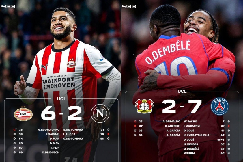 Equally spectacular, the reigning champions PSG also amazed all of Europe by crushing Bayer Leverkusen 7-2 away from home. This match featured a total of 9 goals and 2 red cards, highlighting the passion and intensity that the Champions League delivers.