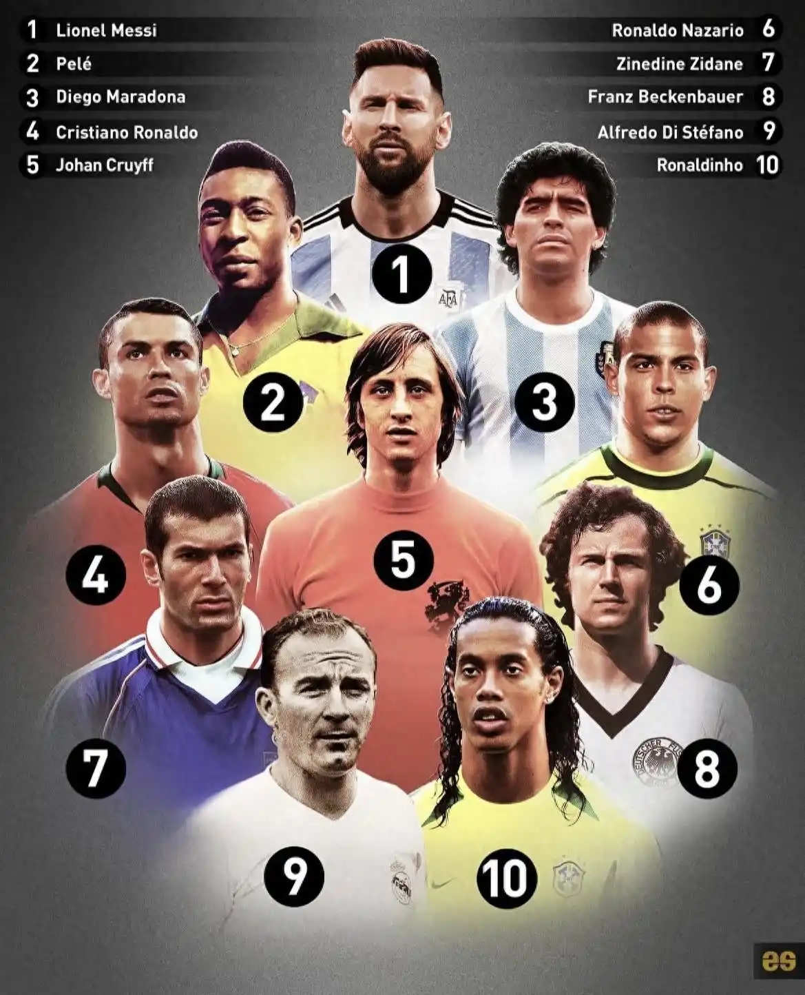 The Messi-Ronaldo rivalry remains an eternal topic in football! Recently, foreign media Global Statistics selected the top 100 athletes in history. In the football category, Messi once again surpassed Ronaldo, becoming the only player to break into the top ten on the list. Messi ranks 3rd, Ronaldo 14th, and Pelé 18th.