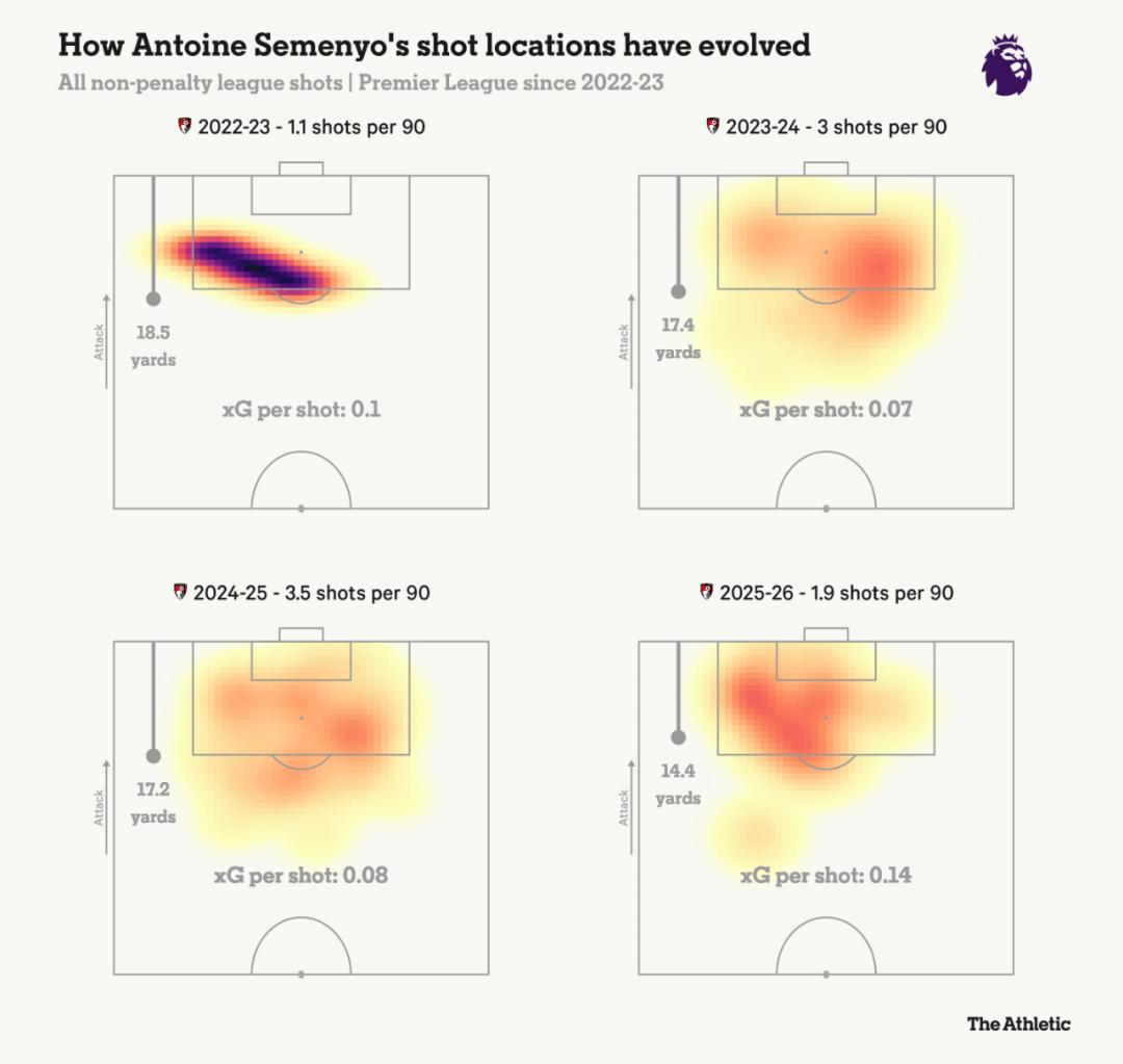 未來不久,25歲的塞門約勢必加盟一家英超強隊。但這是否最佳選擇,尚難預料。他的風格最適合伯恩茅斯的打法,自伊勞拉執教以來,只有利物浦在快攻射門次數上超越「櫻桃軍團」,而塞門約善於利用左右腳均衡的優勢,快速發動攻勢,在對手防守混亂時製造威脅。數據顯示,本賽季無球員在反擊中進球數超過塞門約。