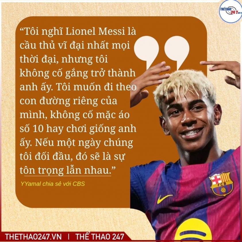 Currently, Yamal is continuously improving himself, possessing breakthrough skills and refined ball control that remind fans of Messi. However, he believes being compared too much can cause young players to lose their identity.
