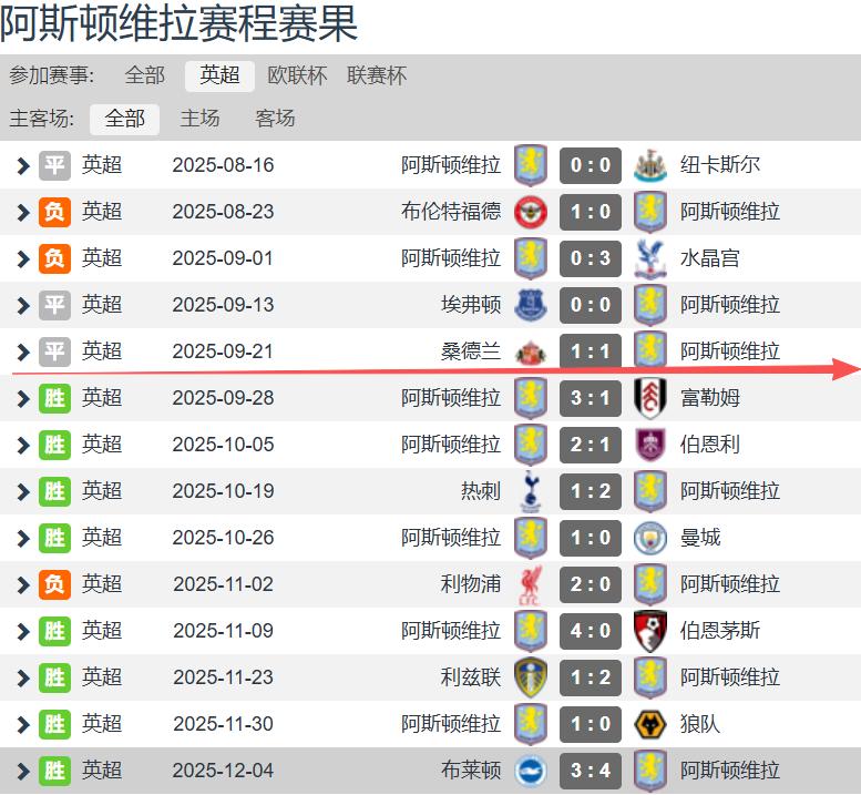 Aston Villa’s incredible points chase this season in the Premier League: after the first 5 rounds, Villa had yet to win, with 3 draws and 2 losses, earning only 3 points and stuck in the relegation zone. From round 6 to round 14, over the course of nearly 9 matches, Villa has produced an outstanding record of 8 wins and 1 loss, including the recent 4-3 away victory over Brighton, amassing 24 points in total. Their only defeat was a 0-2 loss away to a struggling Liverpool. Aston Villa has truly been unstoppable.