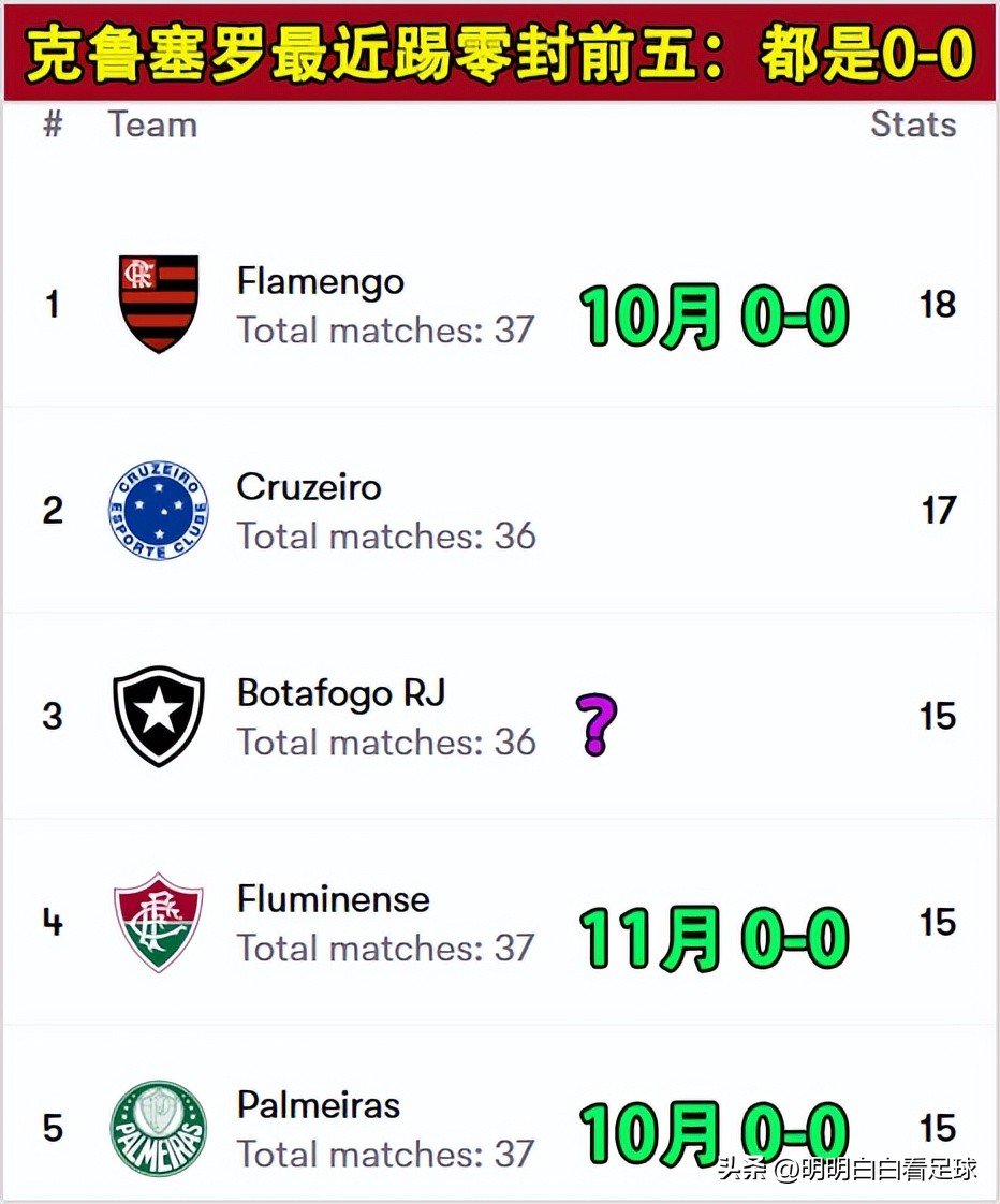 還有一點是:克魯塞羅是一支防守型強隊,共有17次零封對手,是巴甲第二多。
