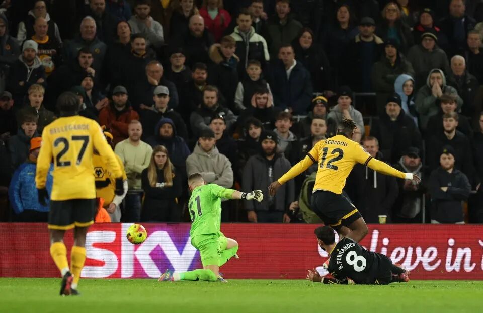 比賽最後時刻,狼隊後衛疲於奔命手球犯規,終於讓裁判指向12碼點。阿馬德射門正中球門中路,耶爾森·莫斯克拉卻多手一擋。