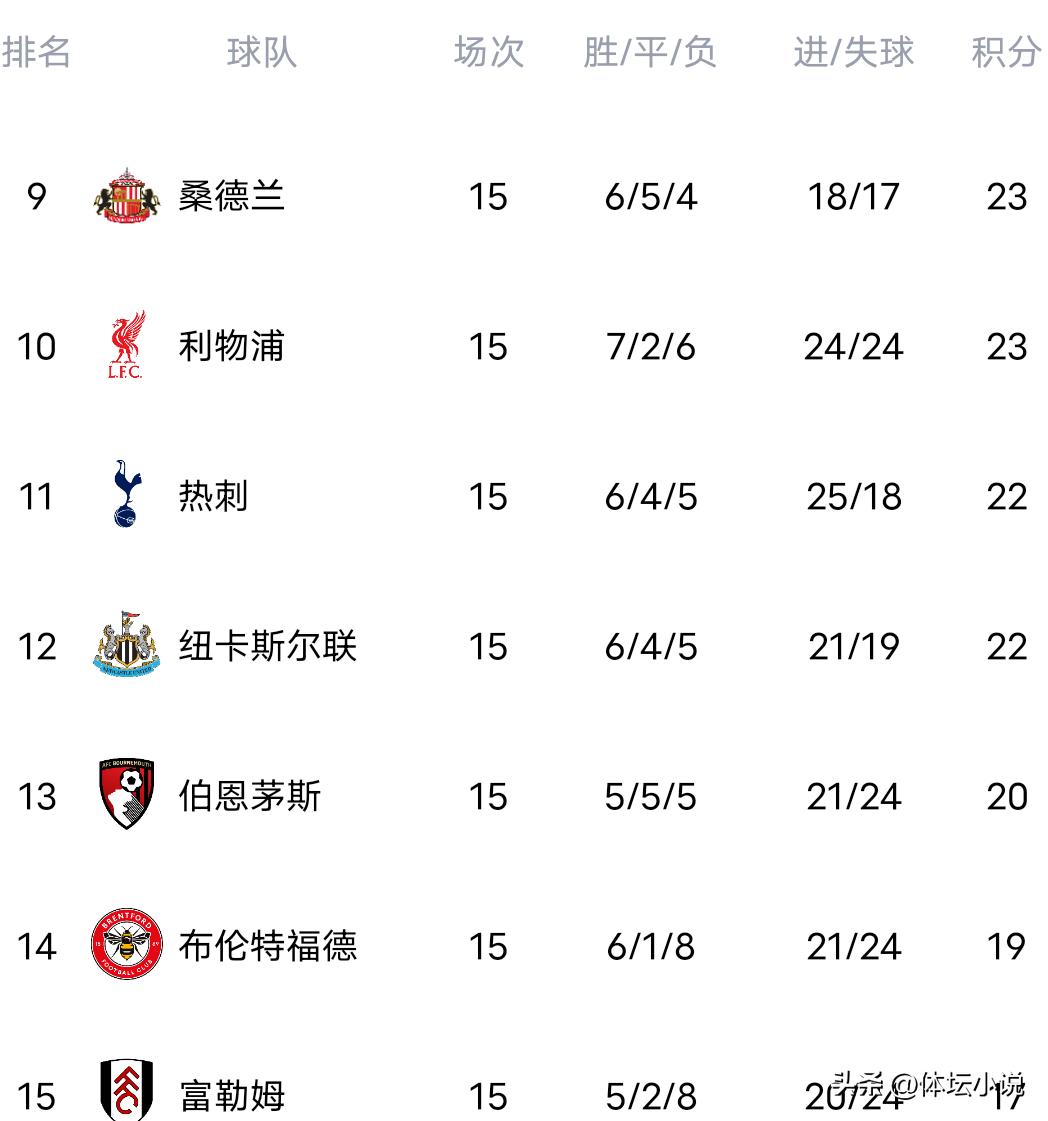 如此一來,英超最新積分榜更新,前三名差距僅剩3分。由於領頭羊阿森納本輪意外以1-2敗給維拉,領先優勢縮小至2分,英超冠軍懸念加劇。曼城則以3-0橫掃升班馬桑德蘭,逐漸找回狀態,連勝三場穩居第二,緊追阿森納,令對手壓力倍增,情勢相當緊張。切爾西與利物浦本輪皆戰平,切爾西跌出歐冠區,衛冕冠軍利物浦更是暴跌至第十,排名甚至不及曼聯和升班馬桑德蘭!