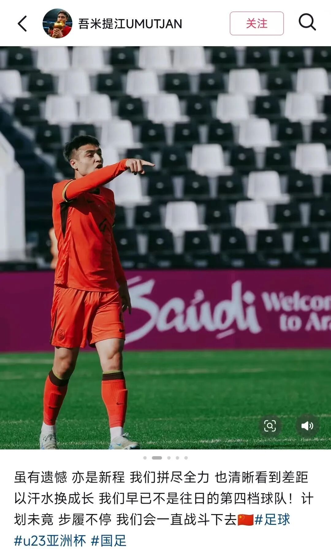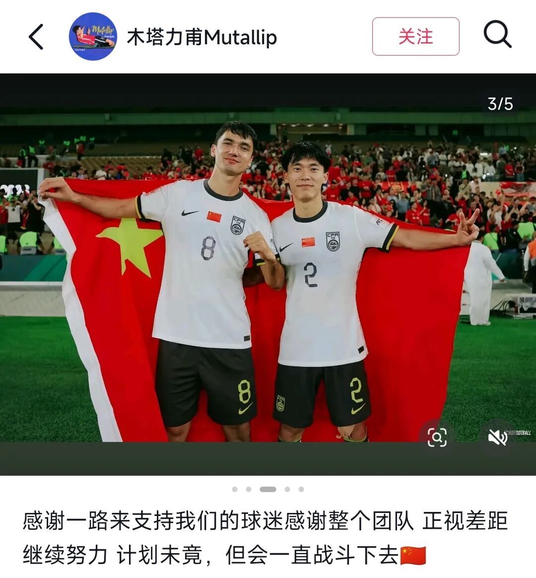 Mutalifu, who has fewer appearances, is still working hard to enter the senior national team. “This dream is not yet realized because I’m currently playing for the U-series national teams. To join the senior national team, I have to keep pushing myself.” Less than a week before the 2024 Qatar U23 Asian Cup and Paris Olympic qualifiers in Asia, he had to withdraw due to injury, which was a heavy blow; two years later in Saudi Arabia, he prepared fully again for this continental competition and finally achieved his goal.