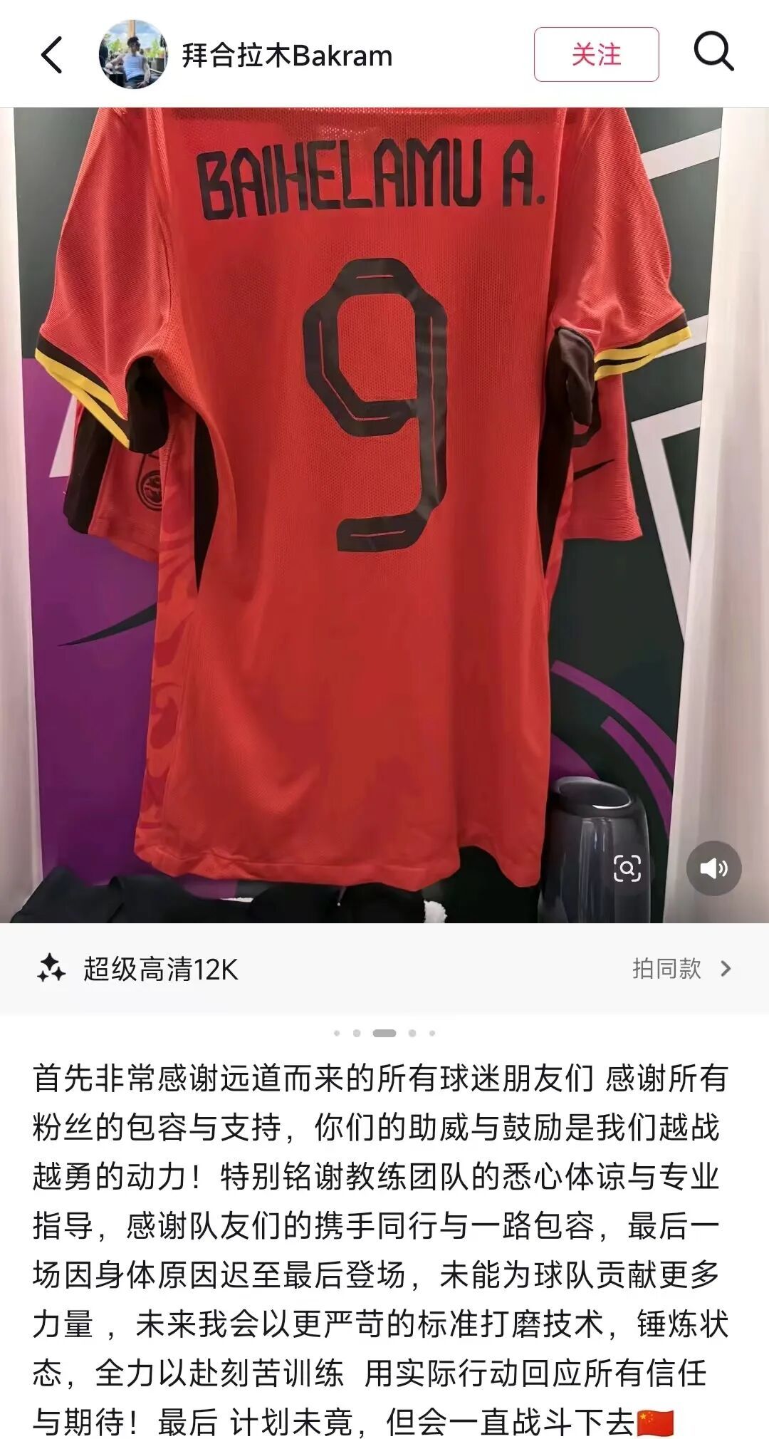 Hardship made Baihalamu stronger and more determined. He never forgets his family’s expectations and never relaxes his self-discipline. Whenever he reaches a new milestone in football, he wishes he could share it with his parents who are no longer with him… After every outstanding performance in major tournaments, his grandfather and brother are always the happiest. “For me, running on the pitch continuously is the best way to repay my family.”