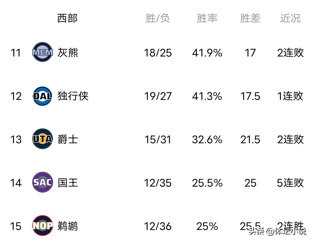 On January 27th Beijing time, the NBA regular season continued with multiple games ending yesterday and early today. The Kings were overwhelmed 116-139 by the Pistons, the Warriors surged in the third quarter to trounce the Timberwolves 111-85, the Raptors caused a major upset by toppling the defending champion Thunder 103-101, the Pelicans unexpectedly defeated the Spurs 104-95, the Heat easily beat the Suns 111-102, the Nets collapsed 89-126 against the Clippers, the Pacers lost 116-132 to the Hawks without much fight, and the 76ers were defeated 93-130 by the Hornets in a demoralizing loss. Consequently, the latest Western Conference standings are out: Thunder first, Spurs second, Suns sixth, Warriors eighth, Clippers tenth!