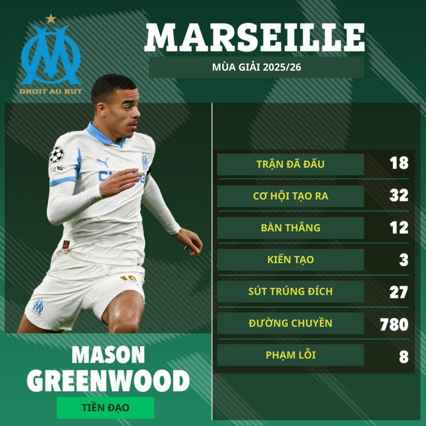 This season, Greenwood has also had the chance to face teams from his homeland like Newcastle and Liverpool in the Champions League, showing he has truly regained his status at the highest level in Europe. Notably, coach Roberto De Zerbi even shocked many by suggesting Greenwood is capable of competing for the Ballon d’Or in the future. According to the Italian strategist, Greenwood’s potential is undeniable; the only question is the player’s determination and focus.