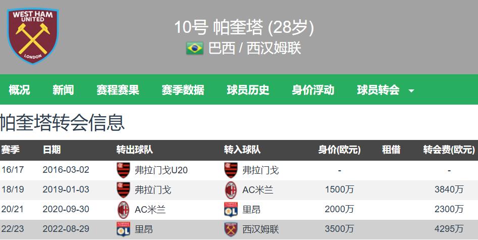 Paqueta is a product of Flamengo’s youth academy. He transferred to AC Milan in Italy’s Serie A during the 2019 winter window for €38.4 million, moved to Lyon in the summer of 2020 for €23 million, and then joined West Ham in the Premier League in the summer of 2022 for €42.95 million. His career stats for these three European top leagues clubs are as follows:At Milan: 44 appearances, 1 goal, 3 assists; at Lyon: 80 appearances, 21 goals, 13 assists; at West Ham: 139 appearances, 23 goals, 15 assists.Paqueta was once highly recommended by Pep Guardiola and almost signed for Manchester City — a near miss that can only be described as unfortunate.