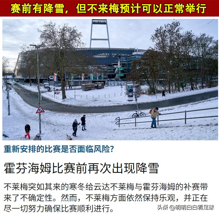 不來梅方面相當樂觀,表示積雪會被清理,預計比賽能順利舉行。