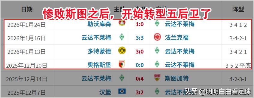 大家都知道,自從啟動保級模式後,不來梅已從四後衛體系轉為五後衛了。