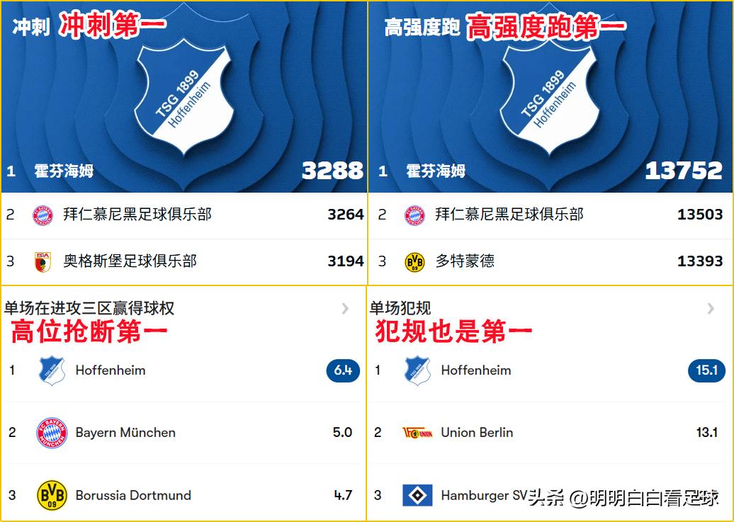 他們踢的是超高強度足球,德甲衝刺第一、高強度跑步第一、高位搶斷第一,甚至犯規數也是德甲第一。
