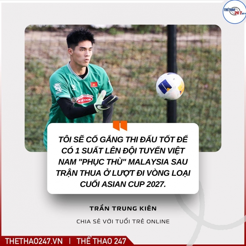 Trung Kiên stated: “For now, I will return to training and focus on playing for Hoàng Anh Gia Lai club to meet the team’s goals. Secondly, I will strive to perform well to earn a spot on the Vietnamese national team to 'avenge' Malaysia after the defeat in the first leg of the final round of the 2027 Asian Cup qualifiers.”