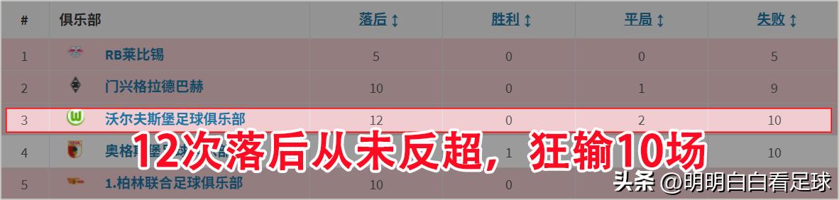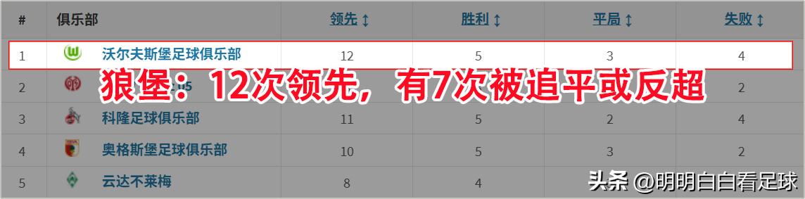 Here’s a very embarrassing statistic:This season, Wolfsburg led in 12 matches, but in 7 of those they were either overtaken or drawn level again, a 58.3% rate—the highest in the Bundesliga.