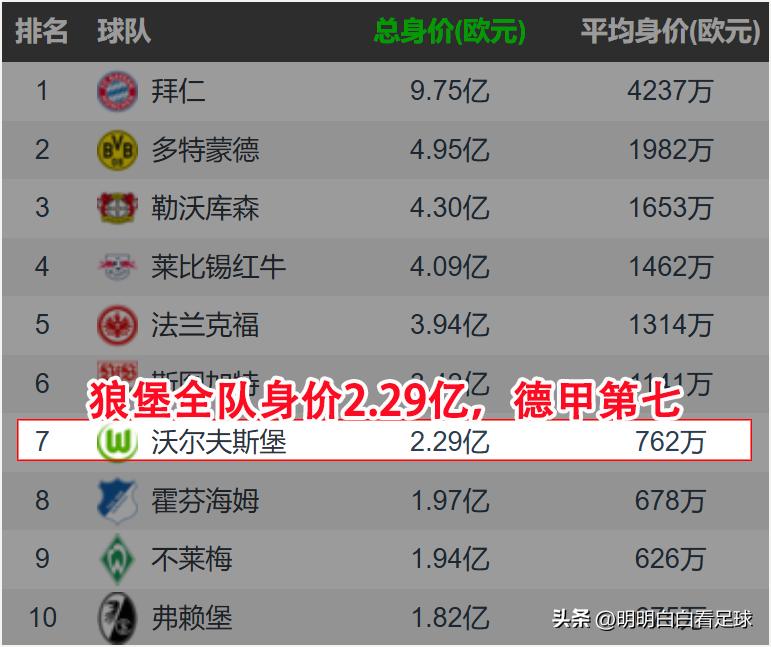 Note: Wolfsburg’s squad is actually upper-mid-table Bundesliga level, worth over 200 million euros, ranking seventh in the league.