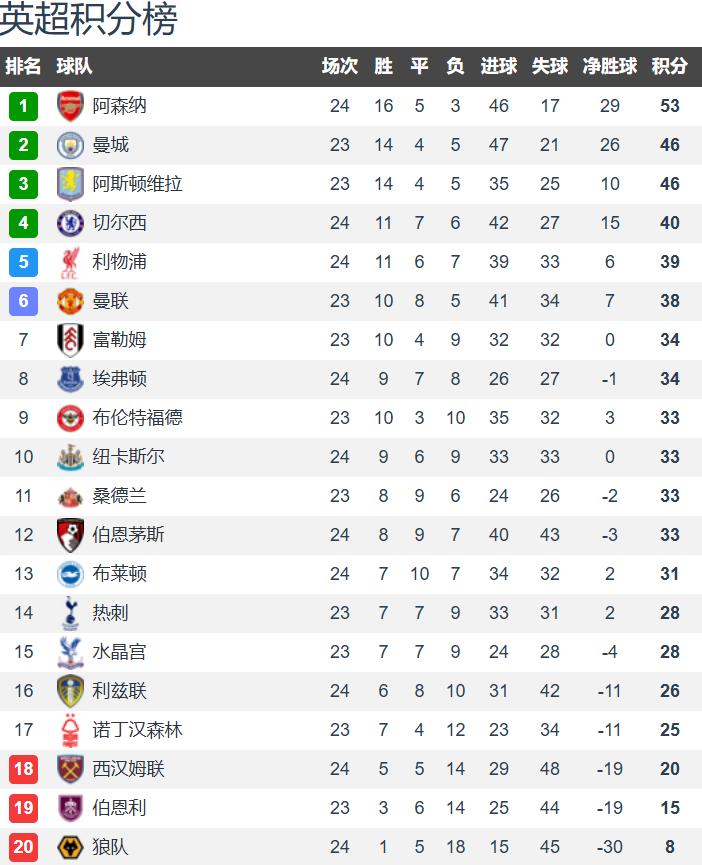 During the 24th round of the Premier League this Saturday night (including early Sunday), the Big Six teams all claimed wins. Arsenal and Liverpool ended their series of winless games, and Chelsea pulled off a dramatic comeback from 2-0 down. Fans joked that after the Champions League group stage, the Premier League’s top teams are fully focused on the league, making it easier to win matches without the distraction of European fixtures...