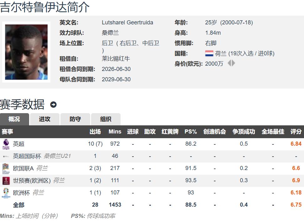 Hateboer is 25 years old, 1.84 meters tall, right-footed, and capable of playing right-back, center-back, and defensive midfield. His contract with Leipzig runs until 2029, with a market value estimated at €20 million by Transfermarkt. This Premier League season, he has appeared 17 times, starting 10 matches, totaling 972 minutes on the pitch.
