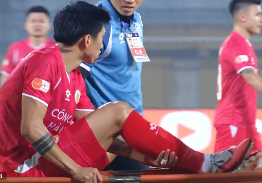 Defender Doan Van Hau was injured in CAHN's win against Ninh Binh FC in the 12th round of the V-League.