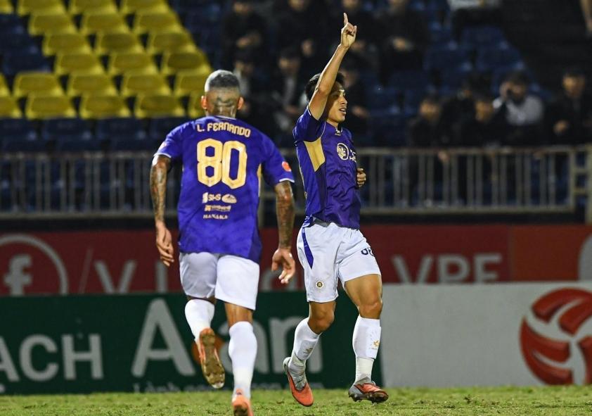 At Vinh stadium, Hà Nội FC showed clear determination to claim all three points from the very beginning. Their proactive play allowed the visitors to control the match early and constantly apply pressure. In the 8th minute, Nguyễn Hai Long capitalized on an opportunity inside the box to open the scoring, giving Hà Nội FC an early advantage. This goal helped the purple-shirted team play more freely, while SLNA was forced to push forward.