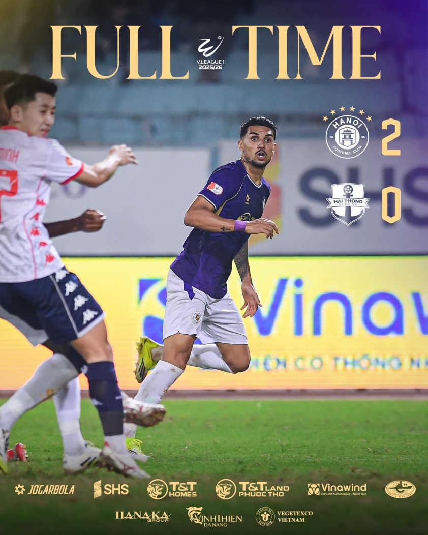 In the following minutes, Hai Phong pushed forward seeking an equalizer but failed to make a difference. At the 79th minute, Hanoi delivered the final blow as Tuấn Hải skillfully dribbled and threaded a precise pass to Hoàng Hên, who calmly finished to seal a 2-0 victory for the hosts.