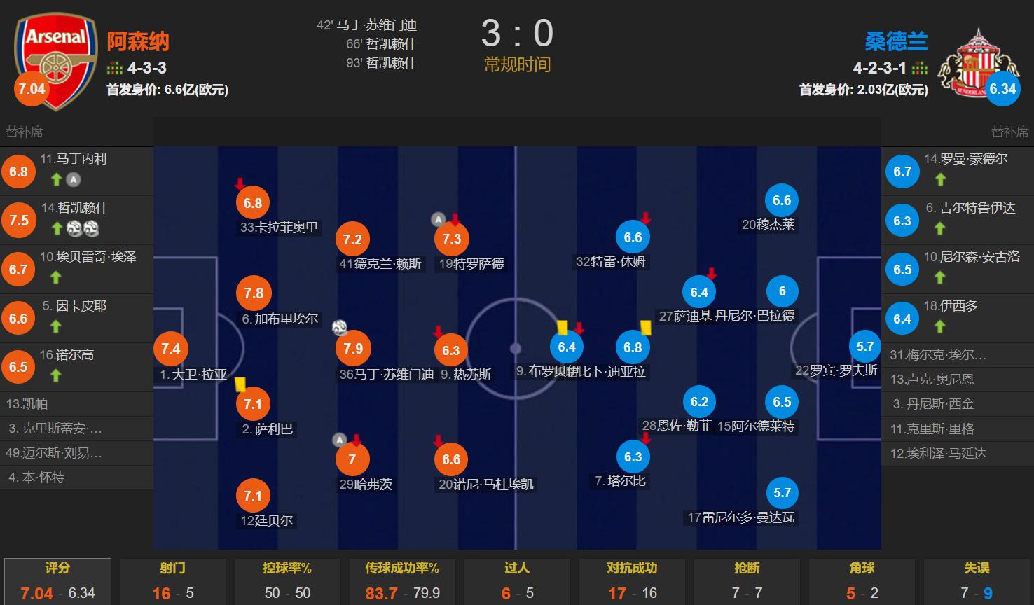 Throughout the match,Possession was evenly split; Arsenal had 16 shots with 5 on target; Sunderland managed only 5 shots with 3 on target.Among them, Jörgensen had 2 shots, both on target, scoring twice. Arsenal needs to utilize and further develop the Swedish striker’s physicality and scoring ability.