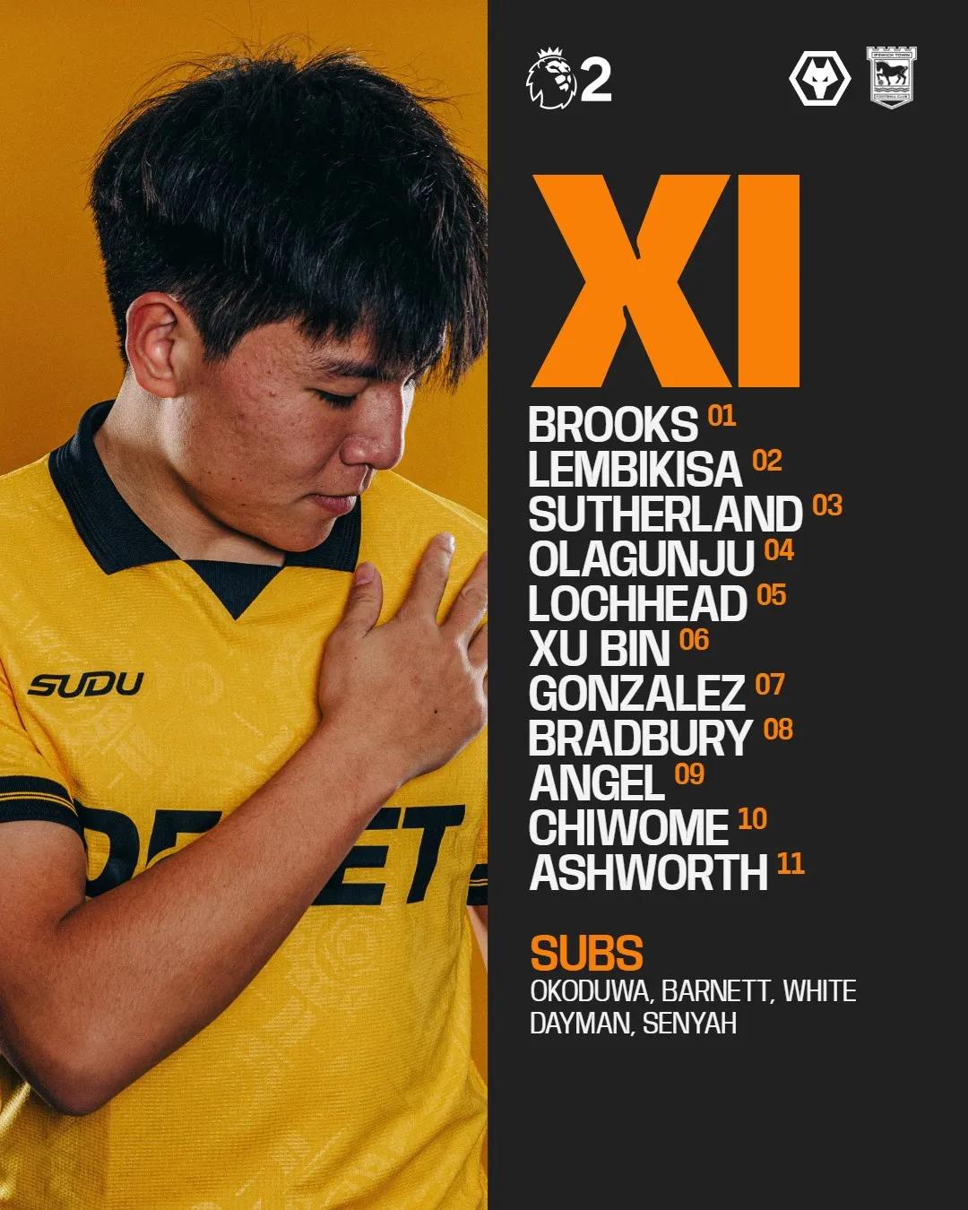 Written by Han Bing Arriving at Wolves on January 25, Xu Bin made his overseas debut 14 days later. Moving straight from the U23 Asian Cup to training with Wolves' U21 team, he was unaffected by the long journey. On February 7, Xu Bin started wearing the number 6 shirt and played the full game as Wolves U21 were overturned 3-4 by Ipswich U21.